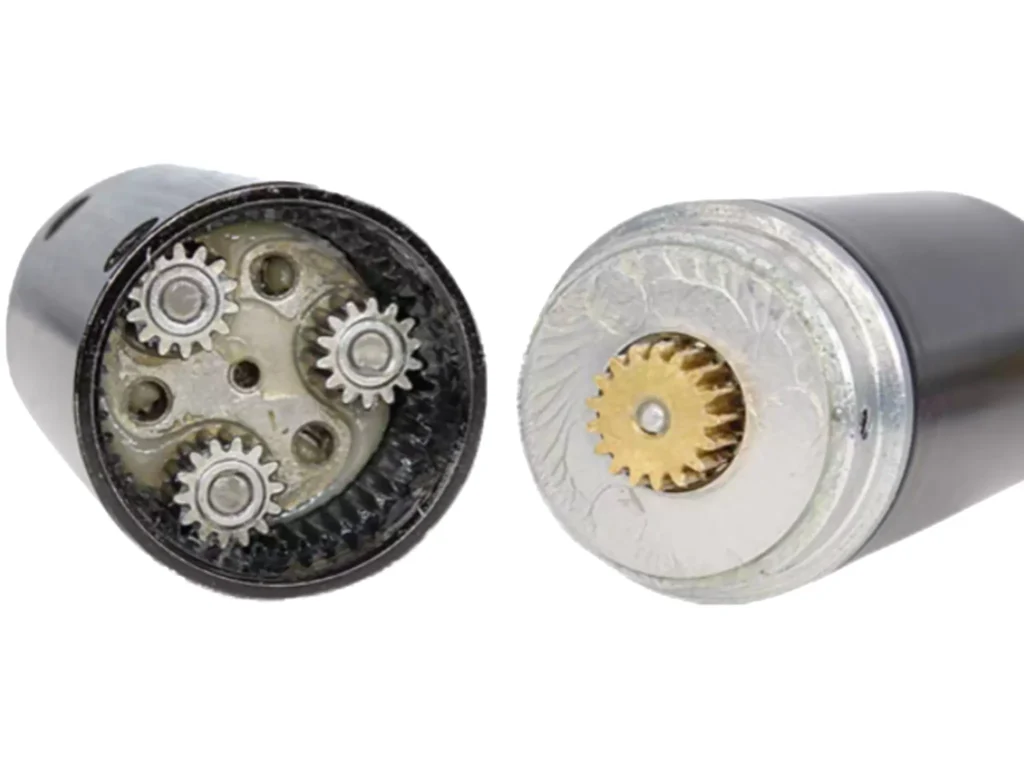- Planetary gear structures provide higher efficiency and smoother operation than spur or worm gearboxes.